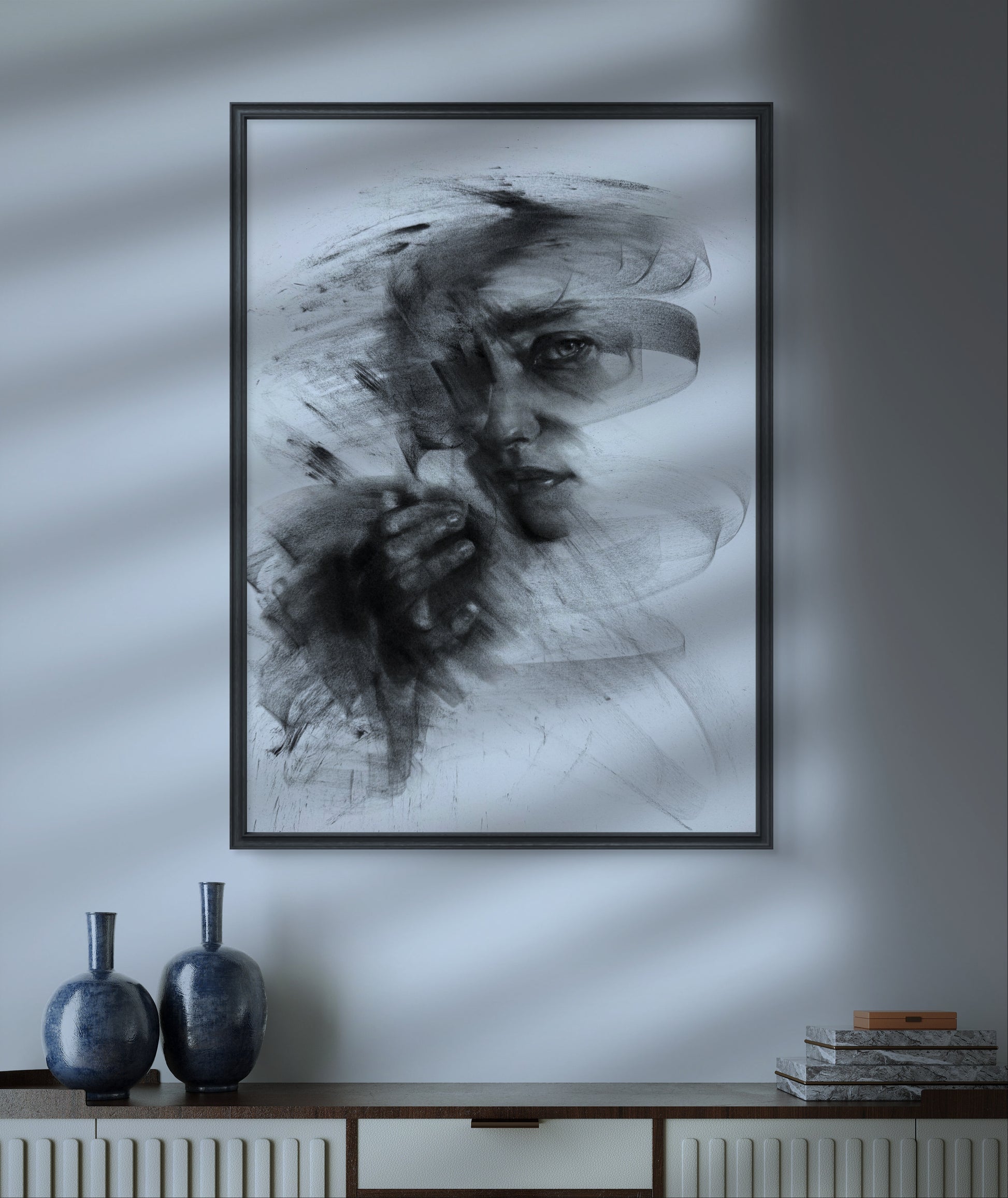A gaze burdened with loss.A hand reaching for what cannot be held.