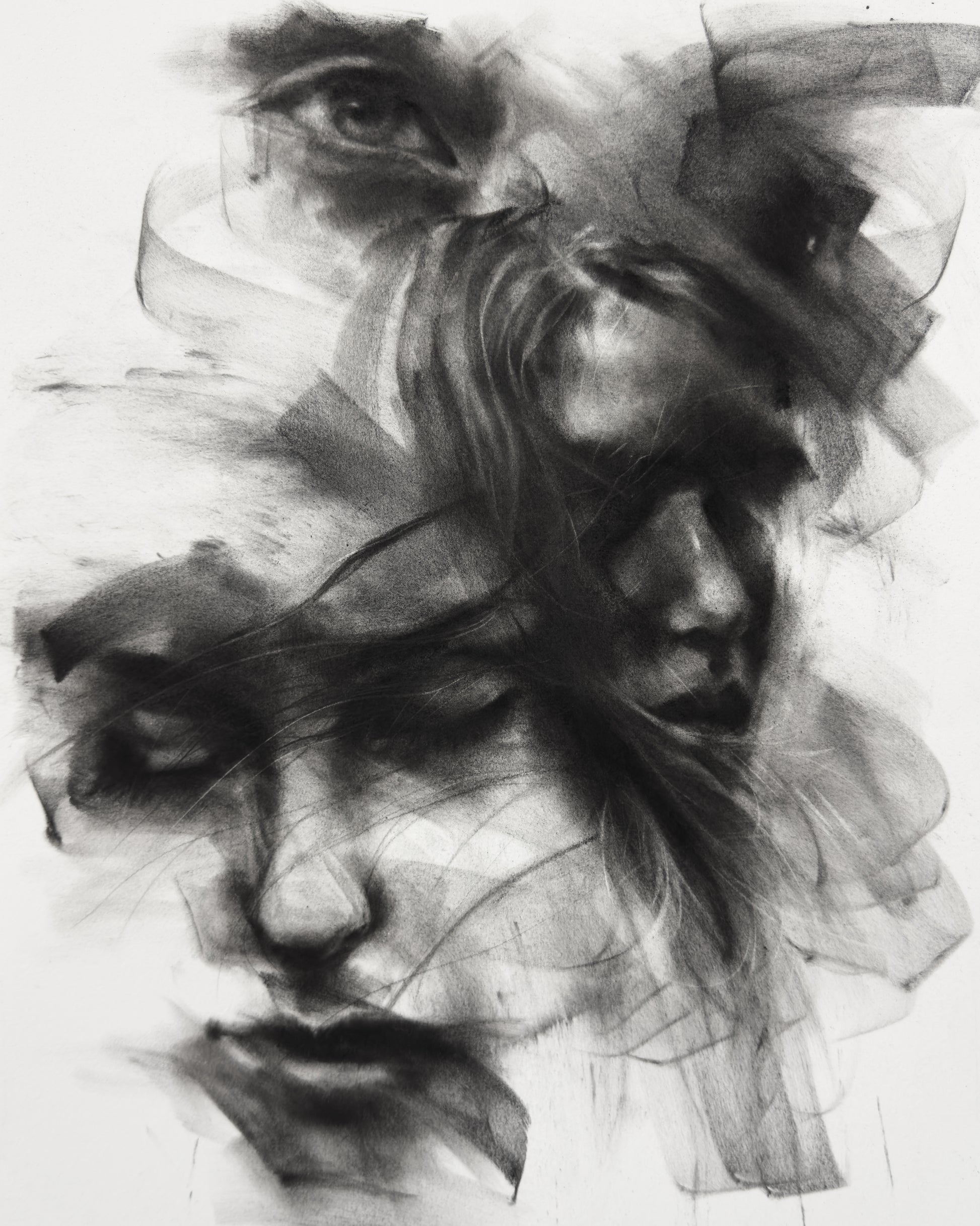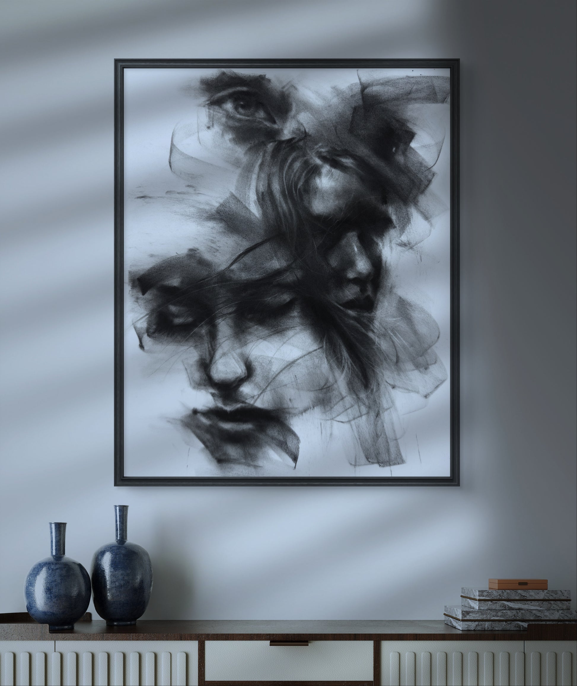 Within the piece, multiple expressions intertwine — some weighed down by memories of struggle and loss.Amid them, a single gaze turns upward to the faint light above, quietly holding on to hope.Each of us carries that same strength — the will to believe, even when hope feels distant.