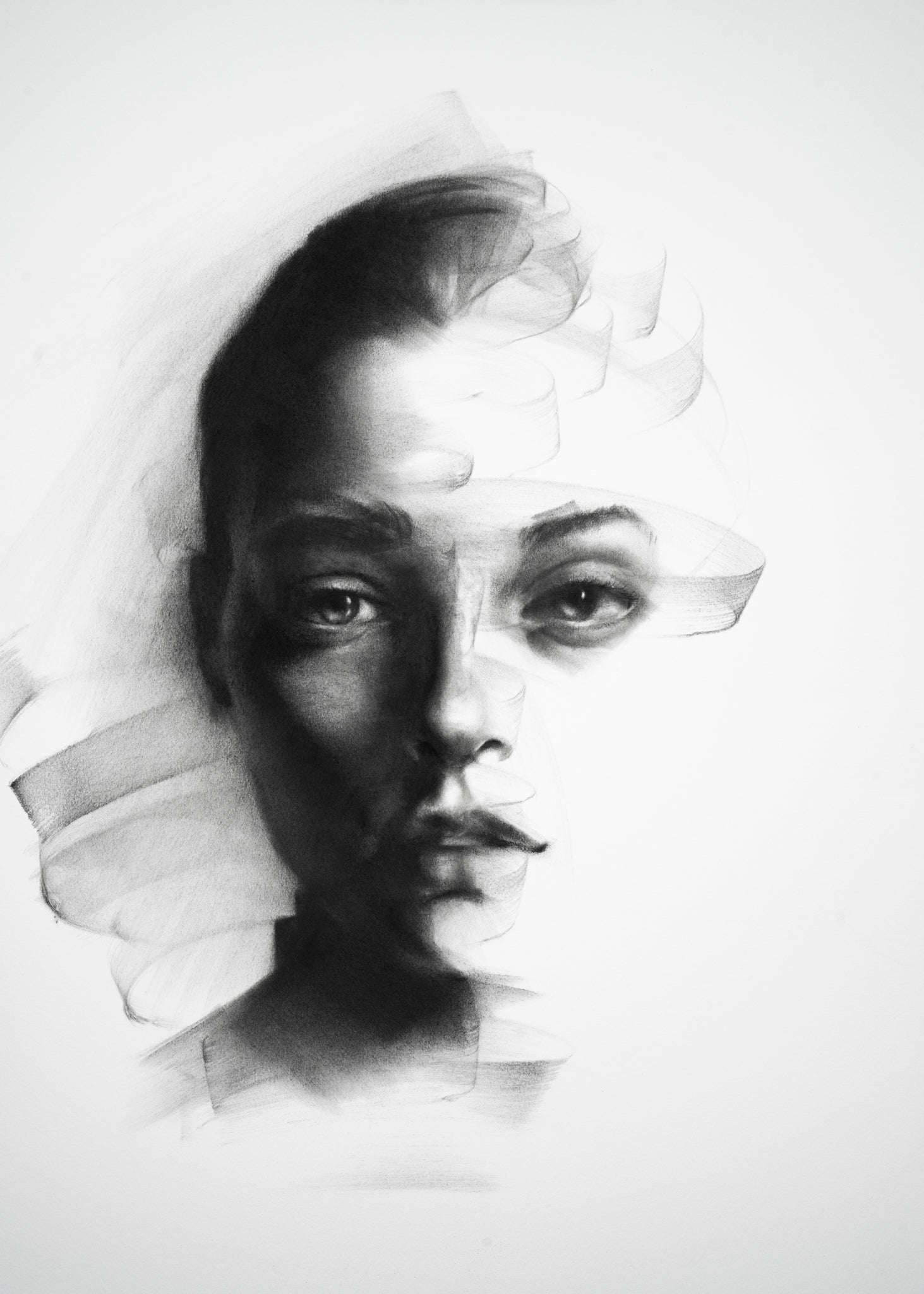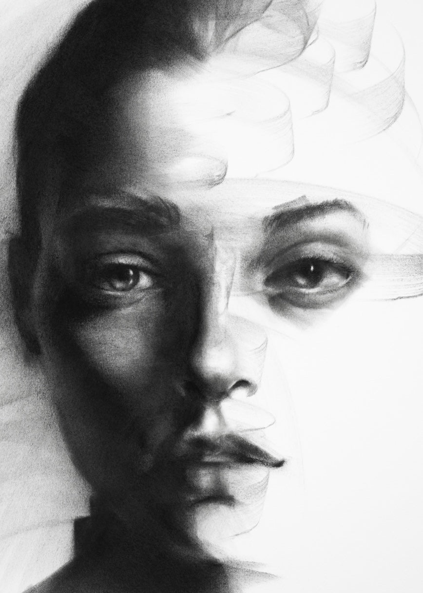 Her expression holds a brief stillness, as if her awareness has just caught up with what has already passed.There is no attempt to resist it — only a quiet recognition.