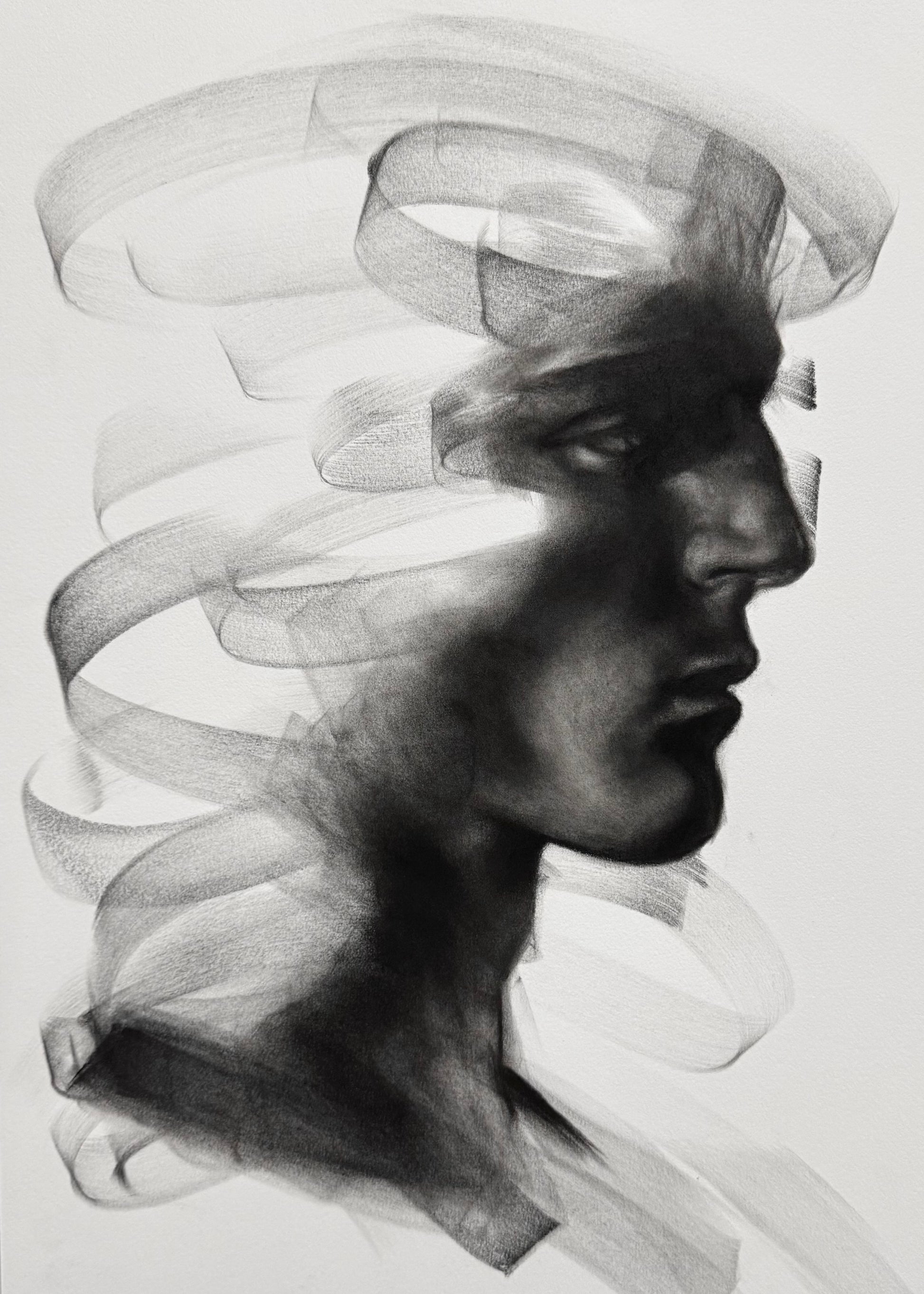 Thought continues to turn in silence as if searching for an answer, yet simply drifting.Between light and shadow, it trembles softly,illuminating something quiet deep within.